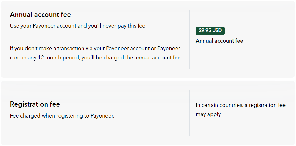 The information above was taken directly from the Payoneer website, and you can read more about Payoneer's fees here: Payoneer - Fees