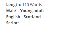 The age selected was Young Adult and the Accent Scottish, I am 20 years old and from Scotland.