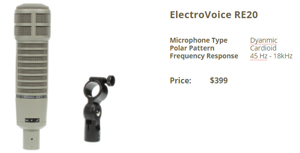 We asked some of our teammates from QC (who listen to your recordings all the time) about their favorite choices for mics. They're not presented in any specific order! The info in regards to pricing as well as specs was taken from Sweetwater. They have great deals and are a very reliable store. You may want to check them out if you want to buy new gear.