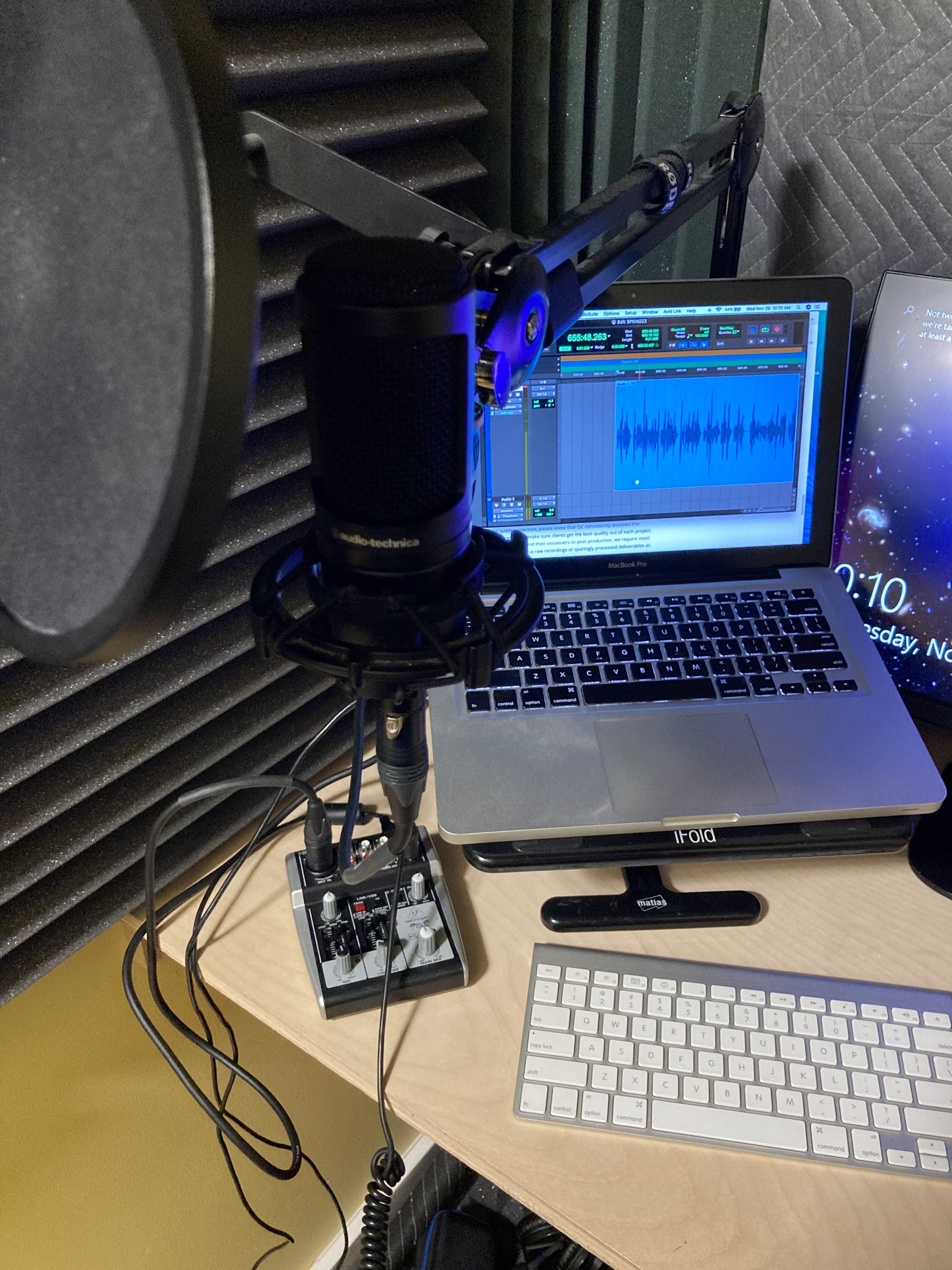 It's extremely minimal. I have AT2020 mic going direct into a Xenyx302 XLR phantom powered mixer interface. There are low / high eqs that are adjusted slightly above 0. Main gain knob is about at the noon spot along with the channel 1 mic knob which is also at the noon spot. I use a pop filter and its all connected with a usb directly into my macbook air running Pro Tools.