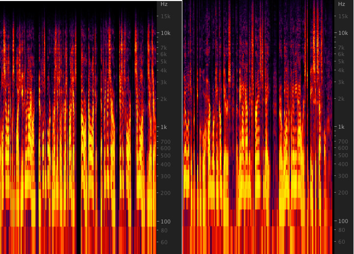 I ran a spectral analysis of the waveforms from your samples, comparing the one from April 20th (left) to this new one (right). Basically, some sort of processing was filtering/deleting everything above 15khz. The current one isn't filtered and contains frequencies well above 20kHz which translates to better sounding recordings. This is just so we can have a visual representation of what we're hearing and isn't exactly scientific, but I hope it helps to bring more clarity to our comments. Remember that software like RX6 can do a lot of processing and degrade audio quality.