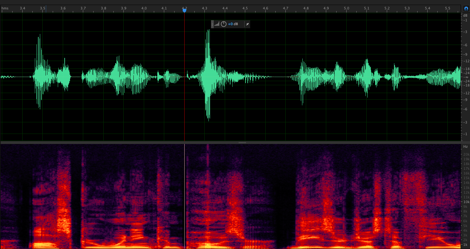 Using Audacity and did a dupe of the track and turned on the spectral view but it's not showing up quite like on your screenshot above (see mine below.) I'm using a Scarlett Solo to a rather long USB cord to my 2011 MBP (APPLE HDD HTS727575A9E362) Do you know of any tests that I might run to find the source of the issue?