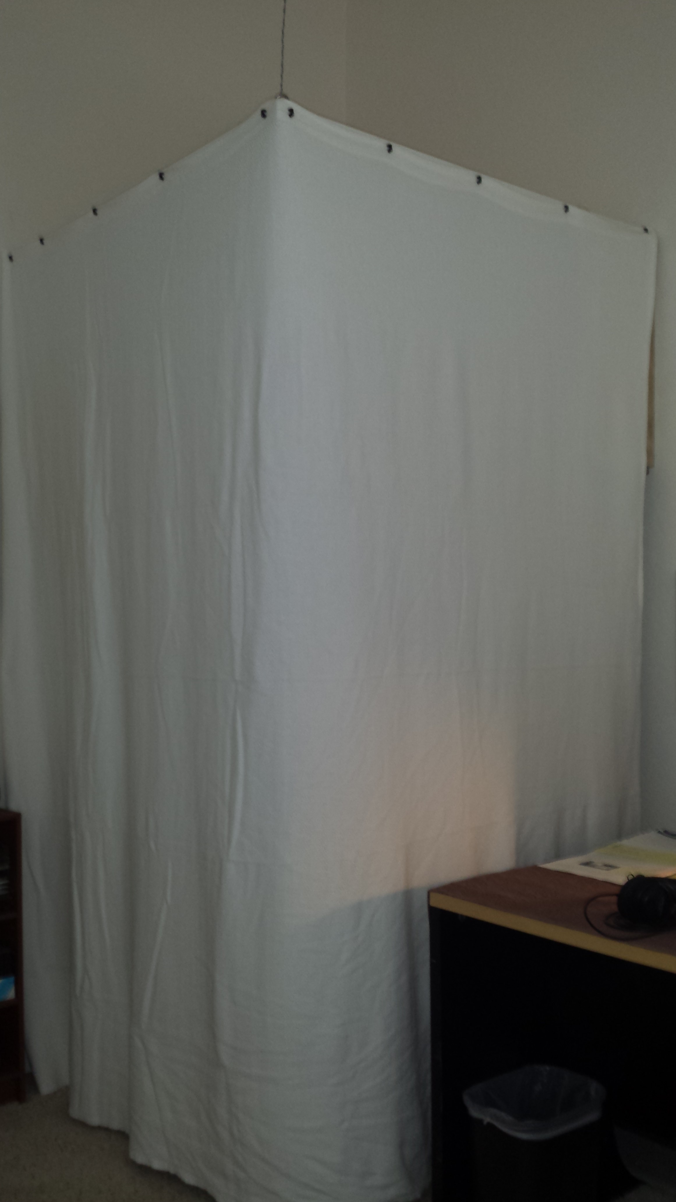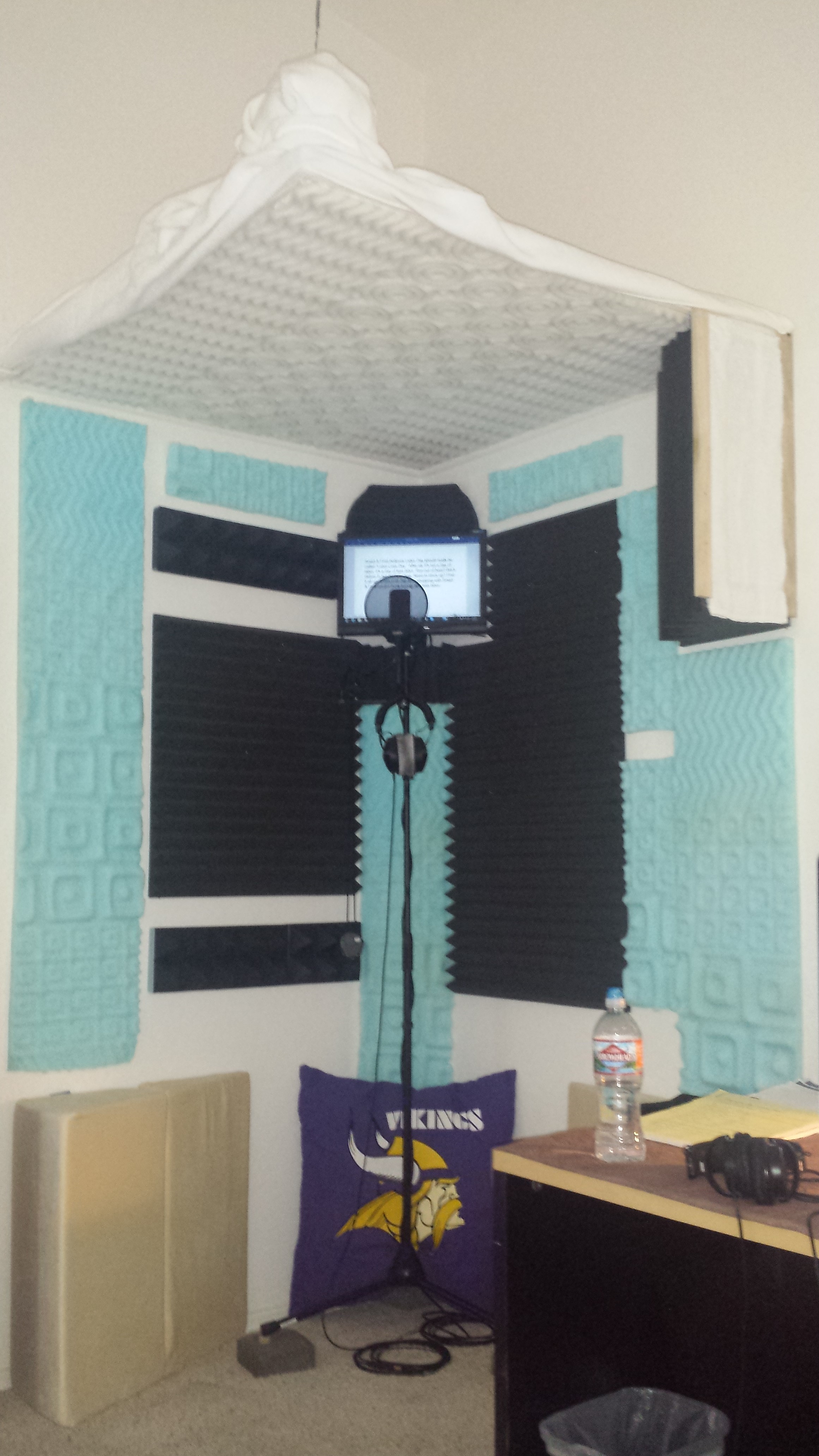 I actually had a cement ceiling! Ughhhh! I thought it was acoustic ceiling until I started looking closely. I was able to hang blankets above me and used heavy duty clamps to secure it to whatever I could. That really really helped!!!