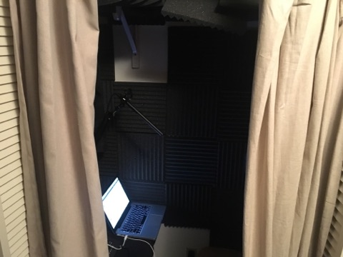 Hey guys, thanks for the feedback, sorry my response took so long. Below are some pics of my setup (it's a little janky I know) but it's basically a closet that I stuck some acoustic foam in. The microphone is a Sennheiser MKH460 so you know it picks up every little thing (fortunately and unfortunately). I still feel like a bit of a deer in the headlights with regards to getting the right sound, because I still have trouble determining whether my audio has reverb and what I should be changing. I tried moving the laptop and preamp out of the way but that didn't seem to do much. If you need pictures from different angles I can oblige (hopefully a lot quicker this time).