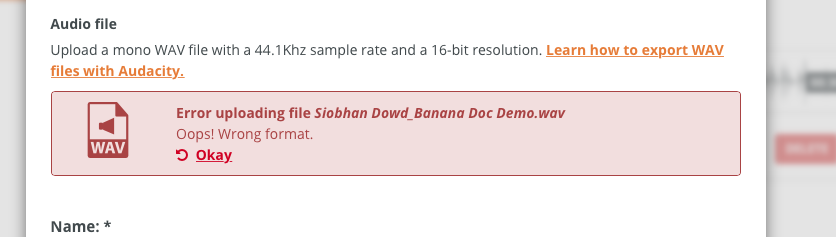 I'm trying to upload a sample and been told it's wrong file type but it's Mono WAV 16bit 44100hz. Any idea what I'm doing wrong?
