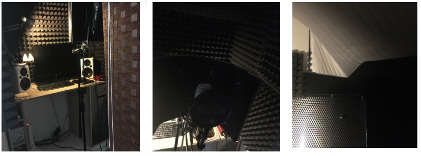 Sorry for the super late reply. Here are some pics of my space. I have a Rode NT1-A microphone, SE Electronics reflection filter. Sound blanket over a room divider behind me and another one sloped above me and my wooden desk with a towel on it. Any advice would be great.
