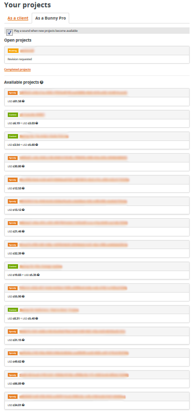 As you can see, it's pretty clogged up by unavailable projects. Even the one 'open' project has already been completed. If this issue could be remedied, I would greatly appreciate it. Thanks.