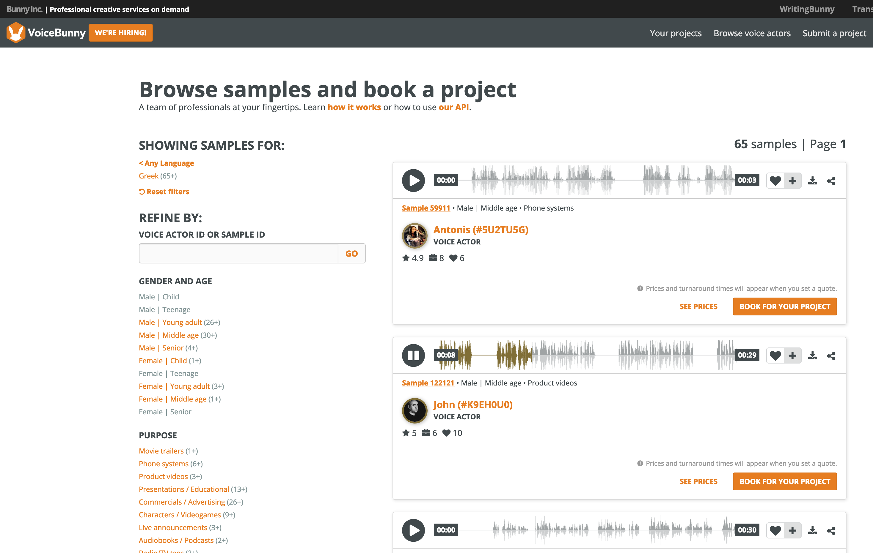 BUT, though i see my profile when logged in, it still does not appear when i perform a SEARCH for a Greek voice!
