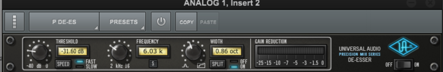 2) DeEesser (See Picture) I'm not familiar with using the DeEesser so I set the unit based on my ear.