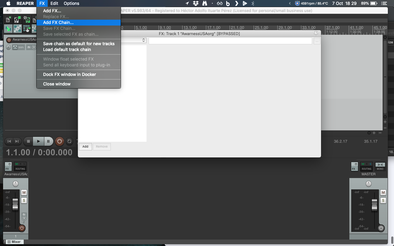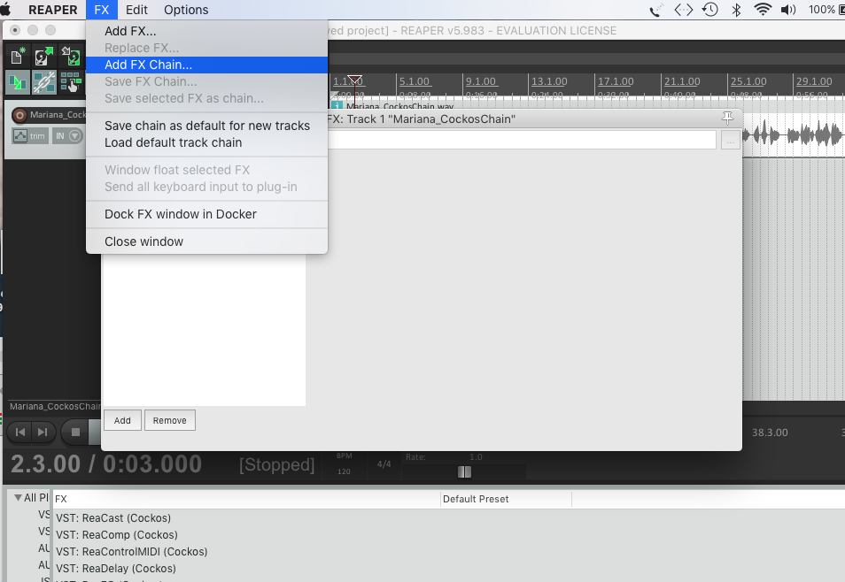 3: Hago click en este diálogo para agregar la cadena de efectos (FX Chain) que me enviaste MarianaCockosChain_v1.RfxChain