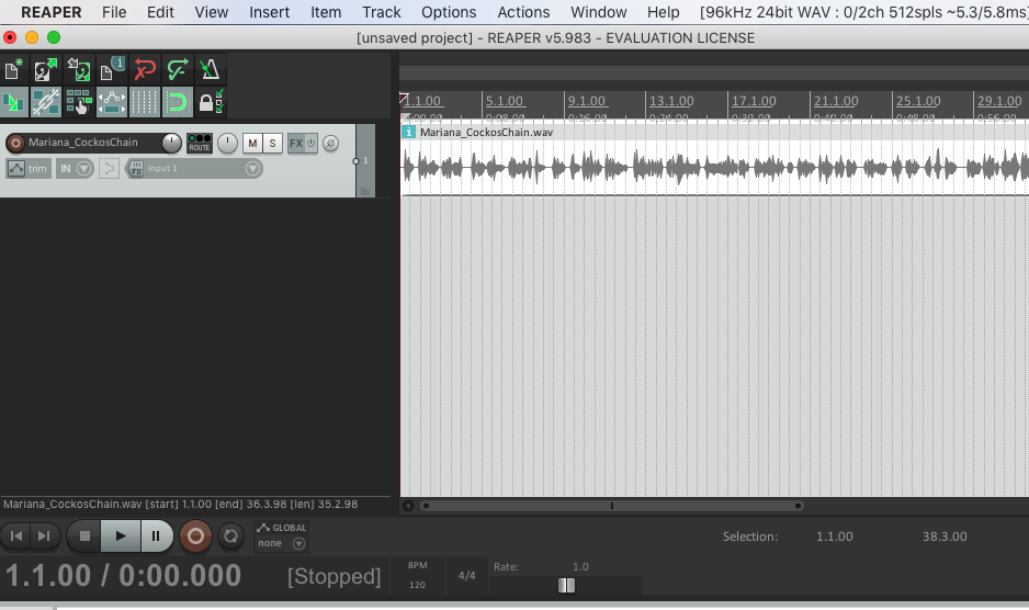 1-Abro Reaper y cargo el mismo archivo: Mariana_CockosChain.wav