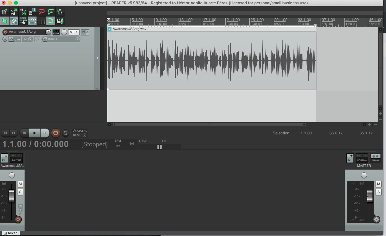Fig. 1: Abre Reaper y carga alguno de tus archivos de voz. En este caso utilicé la muestra que subiste.