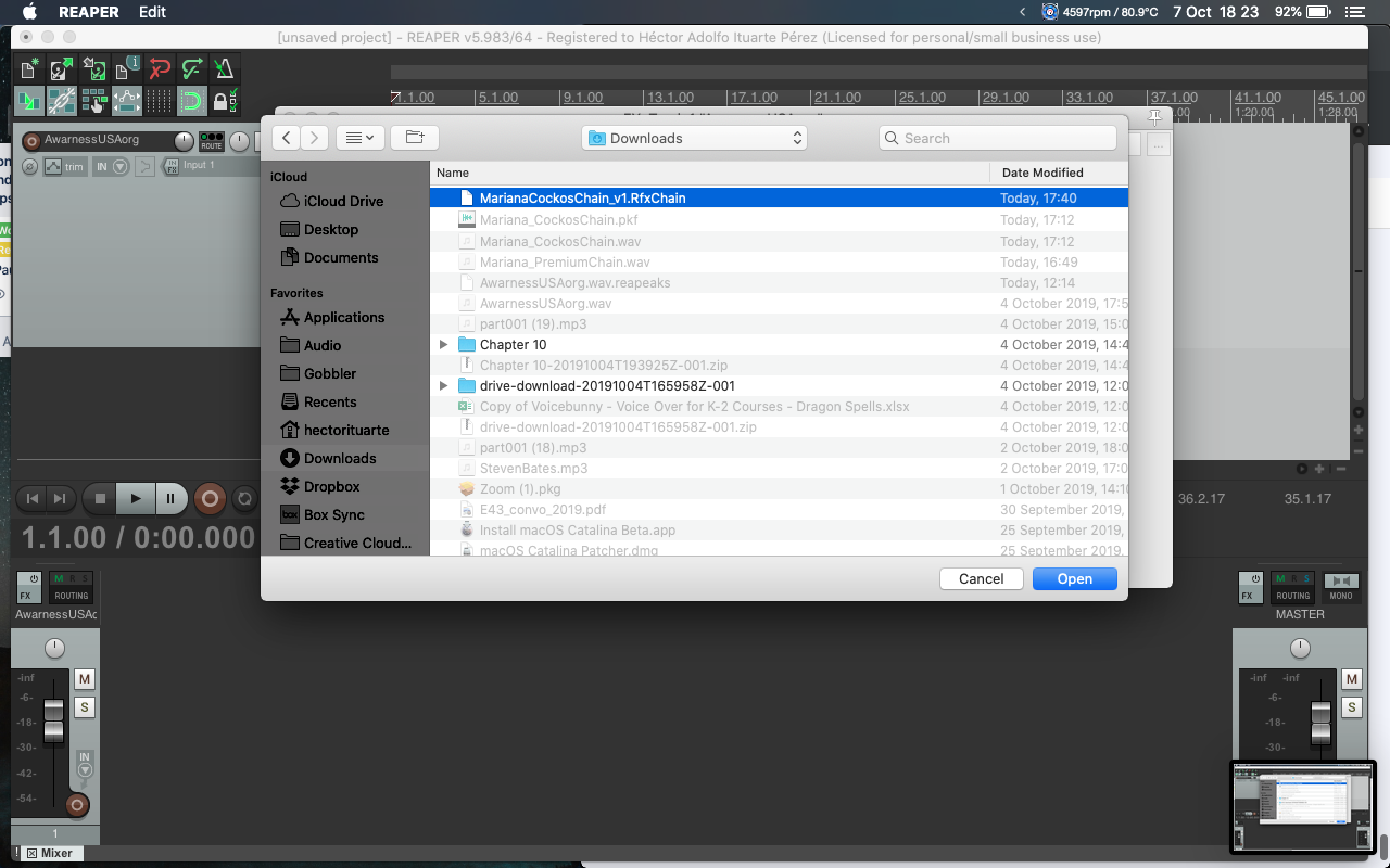 4: Selecciono el archivo de la cadena de efectos (MarianaCockosChain_v1.RfxChain).