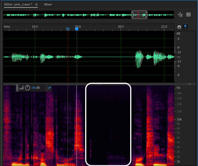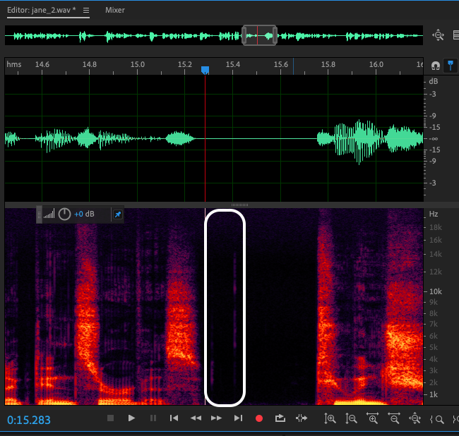 Also, be aware of mouth noises. I understand that right now you can't mute those noises to the theoretical -96 dB of digital silence, since your noise floor is elevated and that even with fades, the cuts will not be seamless and natural, hence the importance of addressing the white noise issue too. These tongue flicks and mouth clicks are present as documented in the following screenshots:
