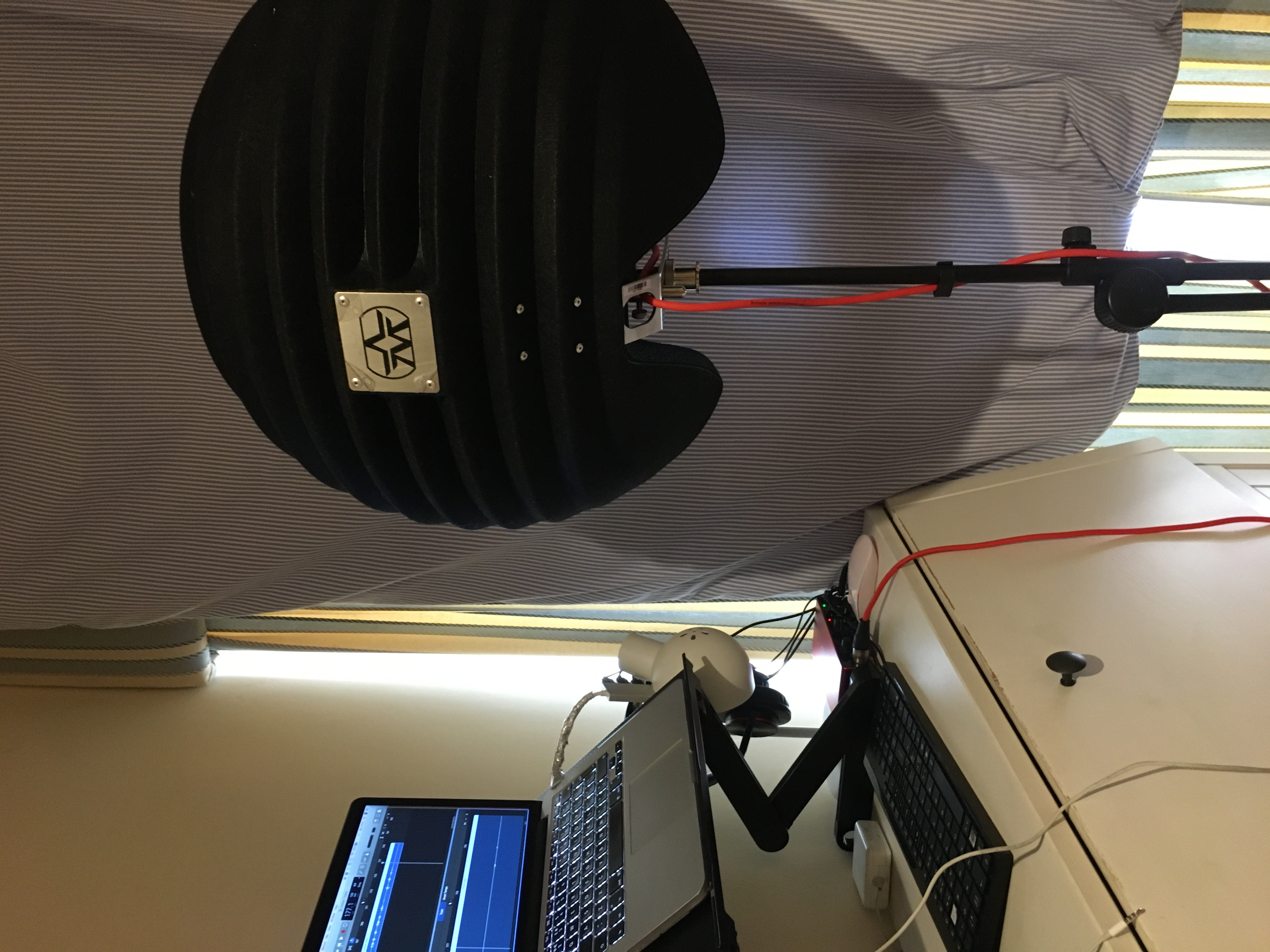 As you can see from the photphoto above, I'm using my Aston Halo Shadow reflection filter and have a duvet hanging behind me. There is als a rug on the floor beneath the mic.