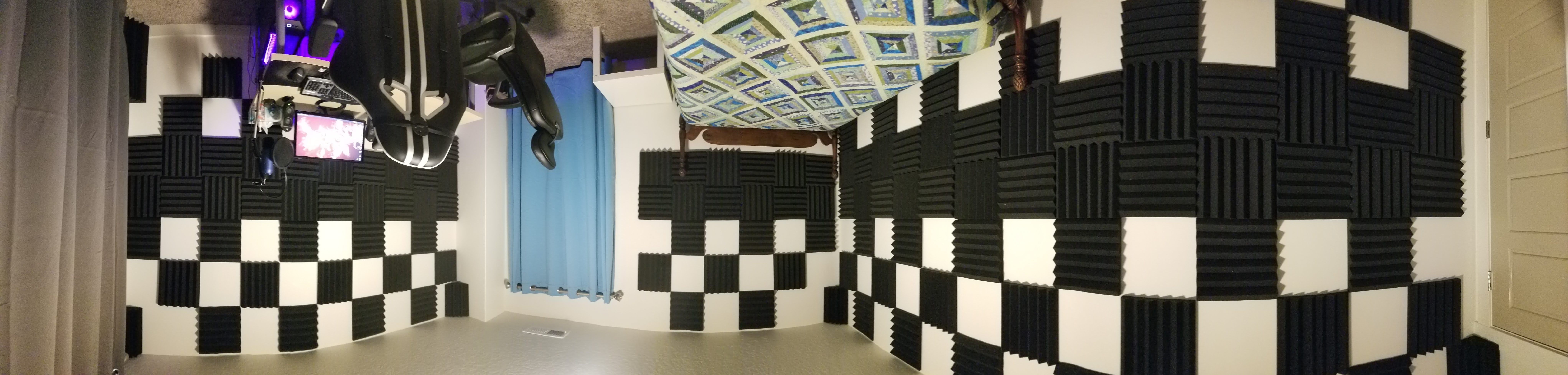 Here is a panoramic photo of my studio. When you say "room tone", do you mean that you can hear too much room tone during periods of silence?