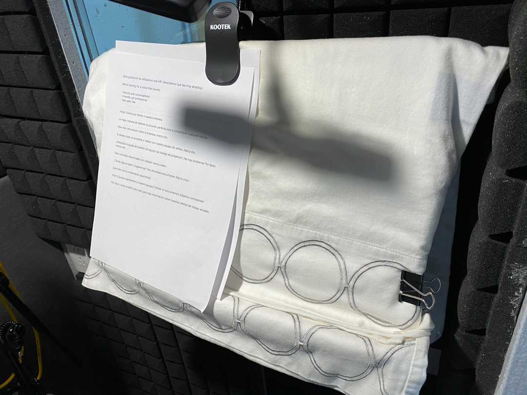 - Respiraciones: te refieres a las respiraciones entre palabras o respiraciones dentro del booth? Estoy haciendo el sonido de base estando dentro del booth, y por eso el microfono detecta las respiraciones. Hazme saber si tengo que salirme del booth.