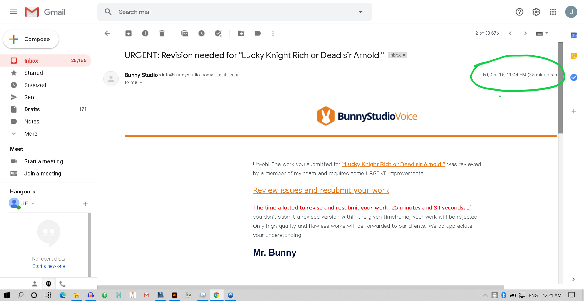 I woke up at 12:15 AM midnight PST to find URGENT: REVISION REQUESTED
