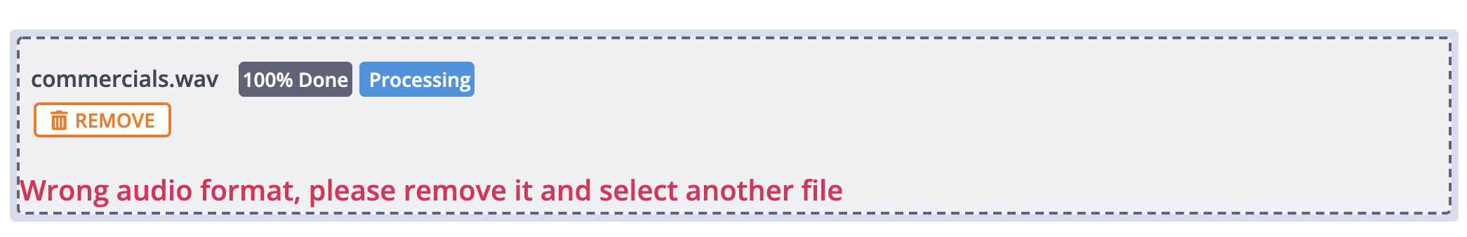 When I upload a sample (that meets all the requirments!) it gets rejected almost immediately.