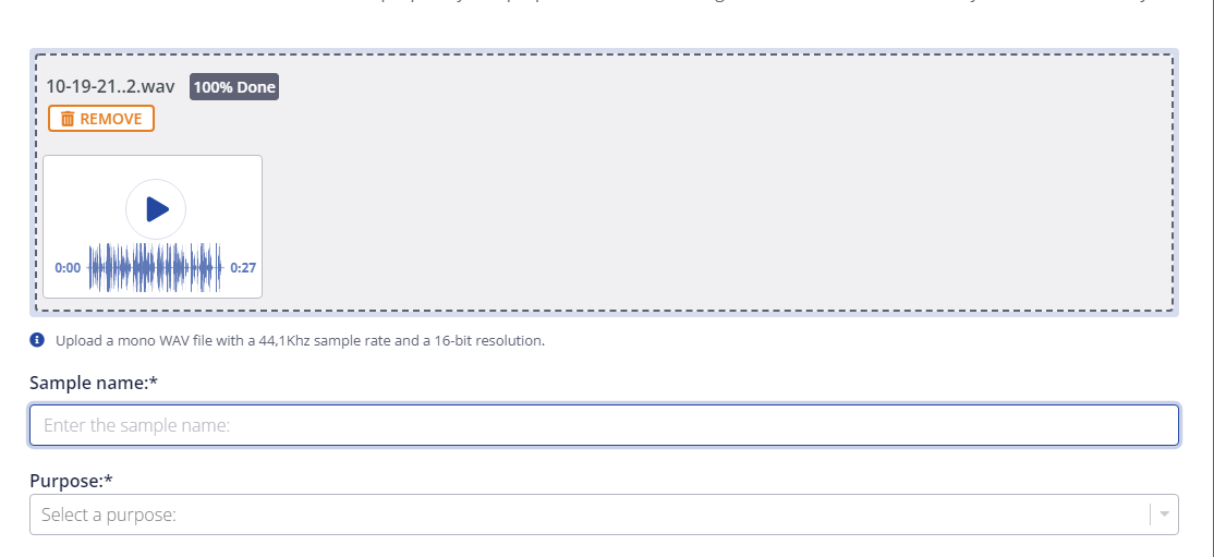 I'm attempting to add a new sample to my account but in the dialog to add the sample and enter metadata, the 'Sample name' field doesn't accept characters. When I type, the sample inside the upload box flashes, but no characters are entered in the Sample name box when I type. I've tried this on two different computers and have tried with both the Microsoft Edge and Chrome browsers with no success. I've been able to upload samples in the past without problems.